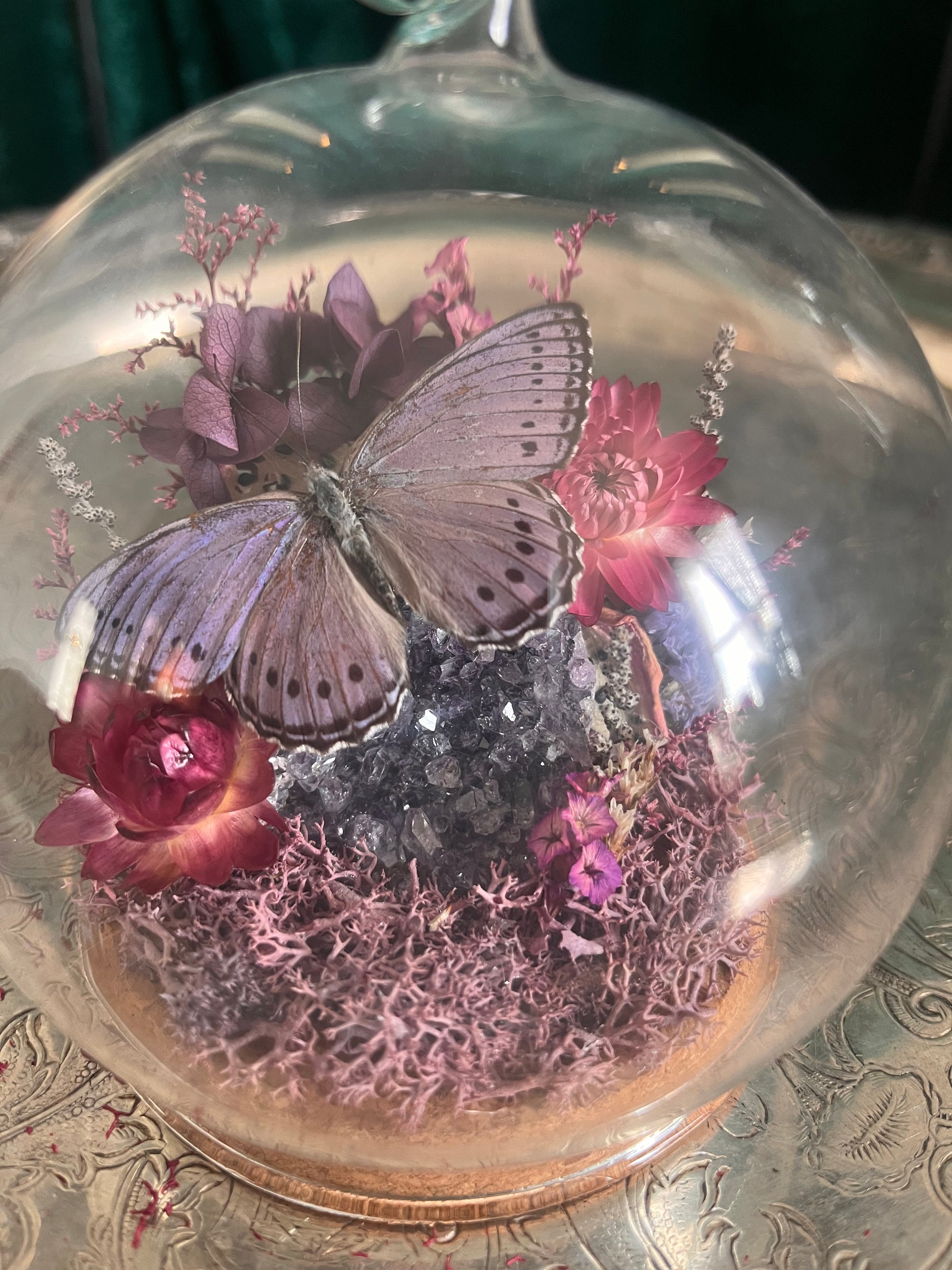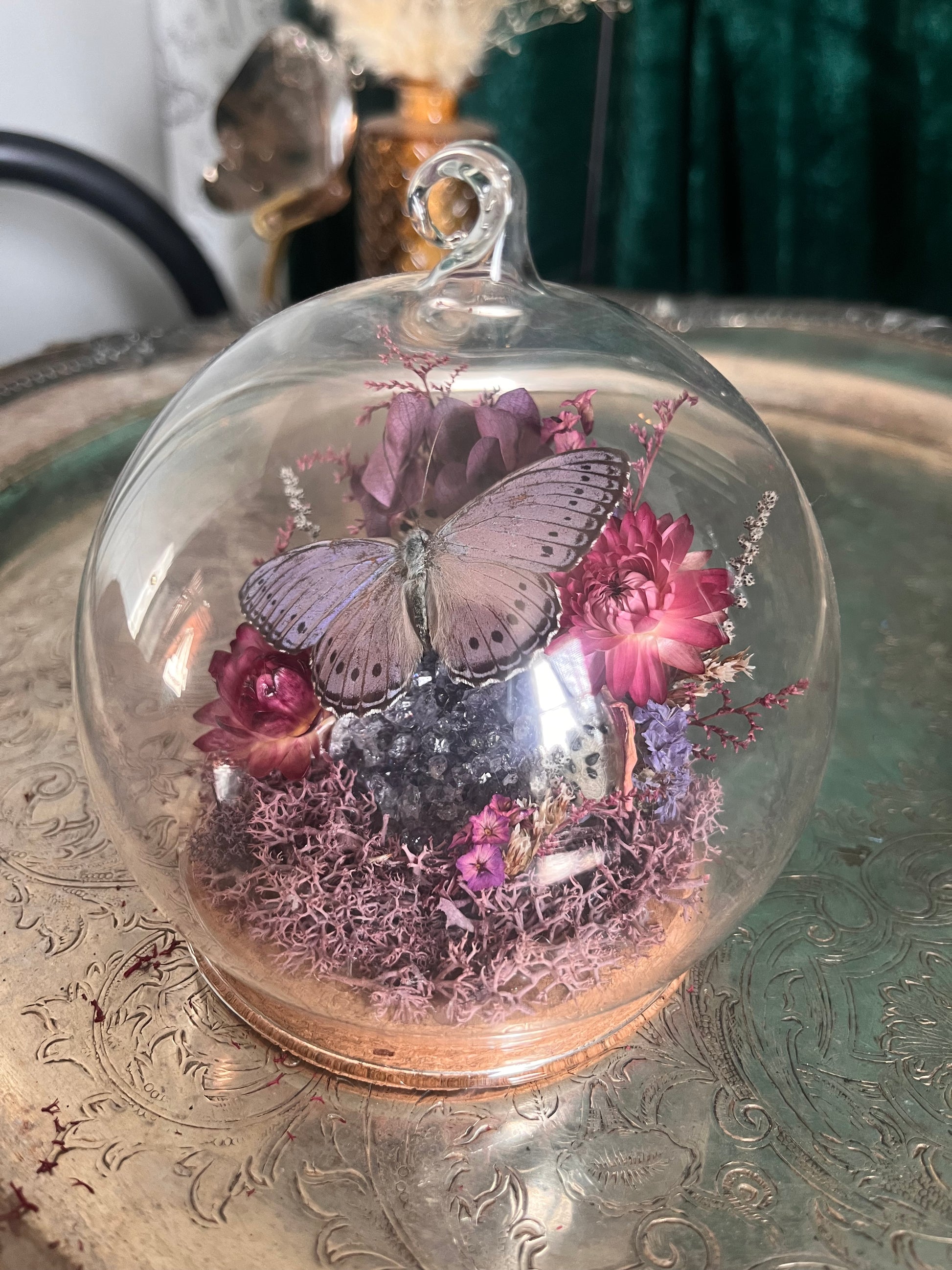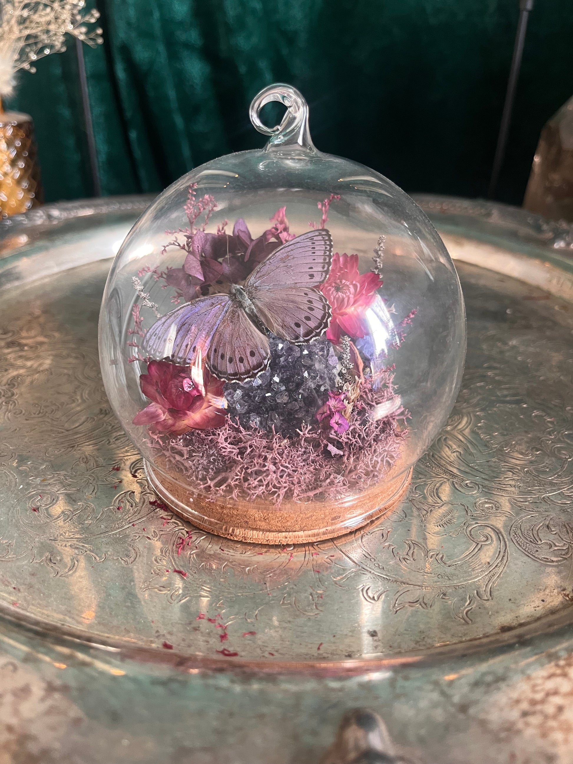 Small done that contains a lilac tree nymph butterfly