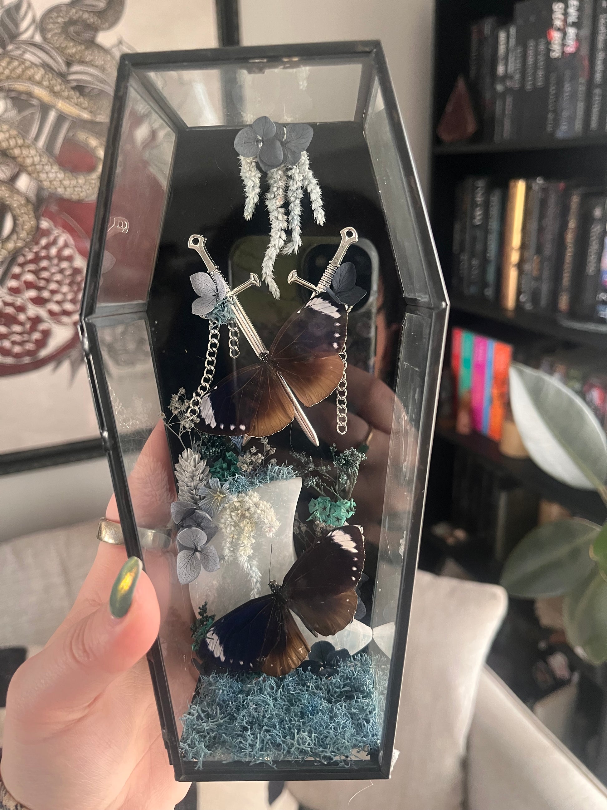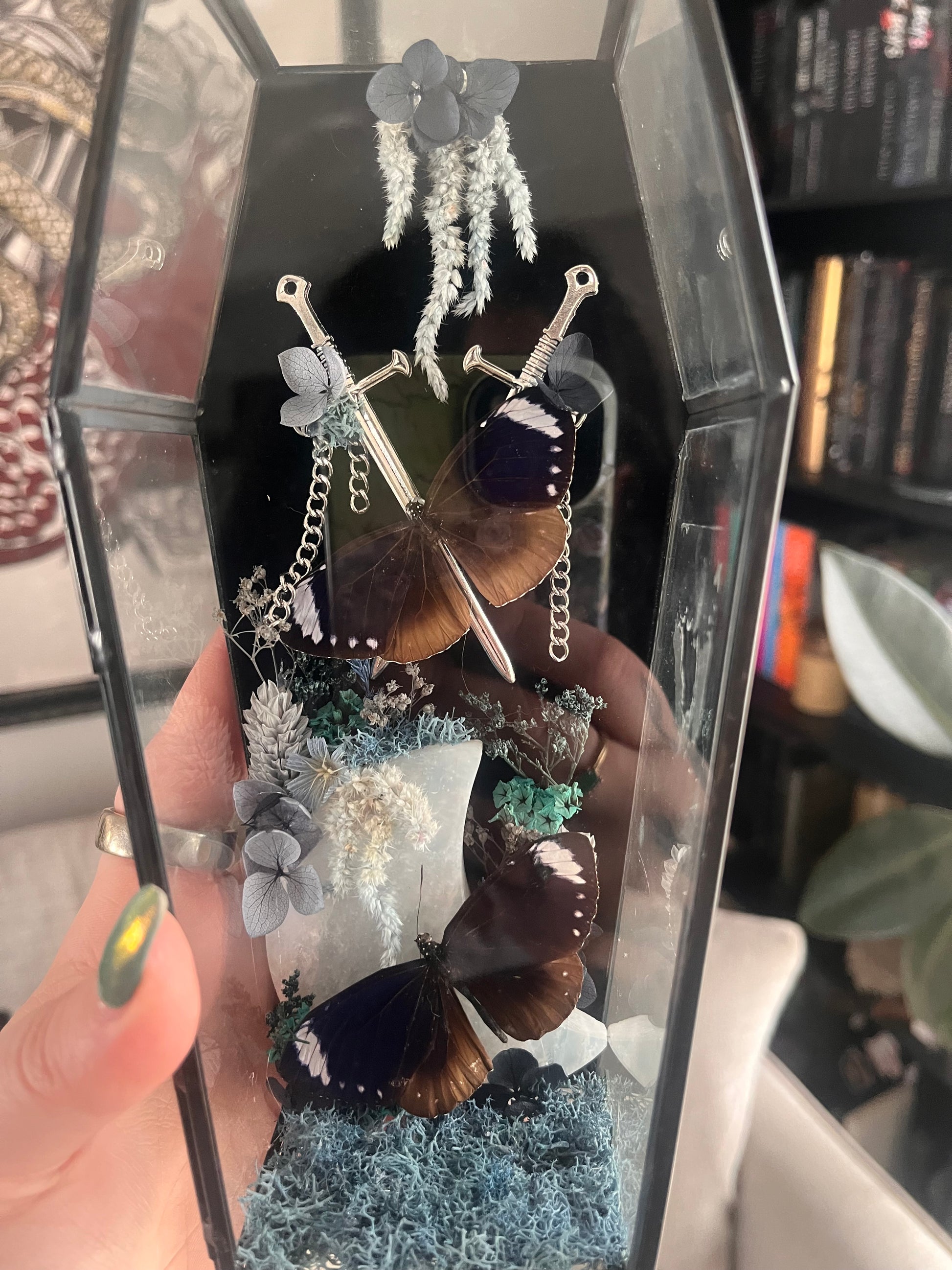 Small coffin with two smaller daggers and two butterflies